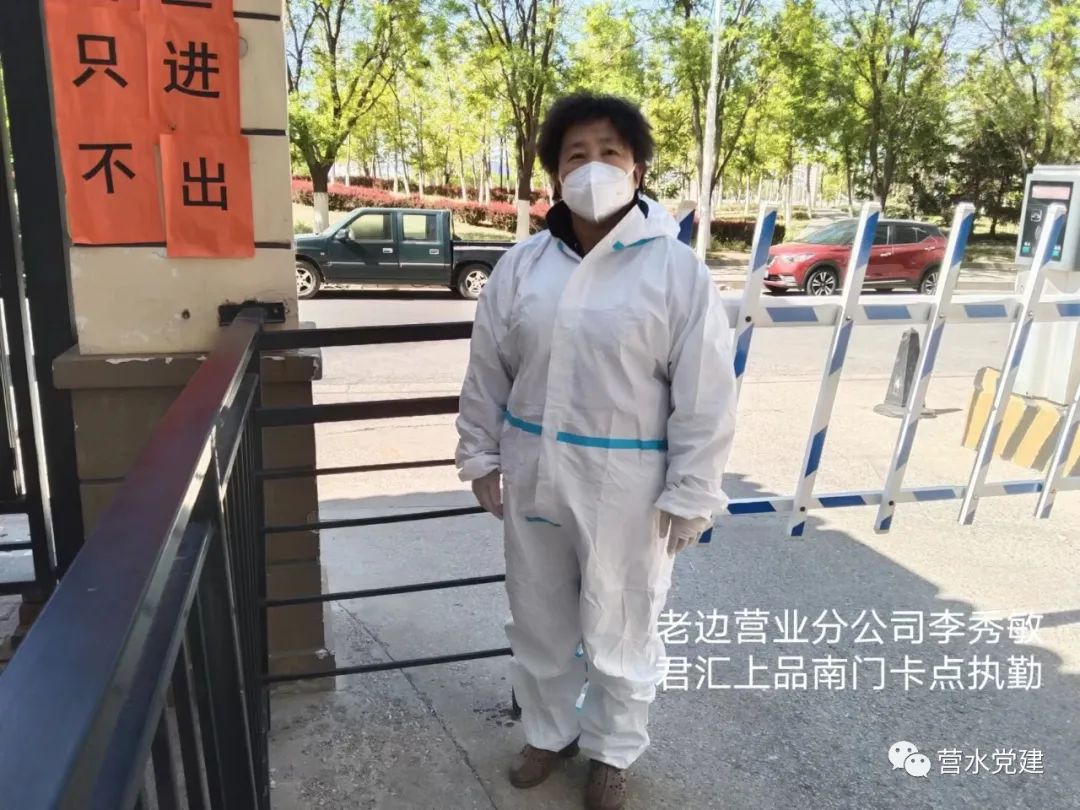 老邊營業(yè)分公司的李秀敏同志是一名有著20年黨齡的老黨員,本輪疫情開始,她克服腿傷尚未痊愈和丈夫已投身疫情防控一線家中無人照料等諸多困難,第一時間與智勝社區(qū)對接,主動擔負起濱水人家小區(qū)等卡點的執(zhí)勤任務(wù)。每天4個多小時的站崗執(zhí)勤,對常人來說尚不輕松,對于腿部有傷的她來說更是十分吃力。每天執(zhí)勤歸來,身心俱疲的她還要及時統(tǒng)計報送黨員參與志愿服務(wù)情況和居家隔離黨員實際情況,常常是一忙就忙到深夜。
