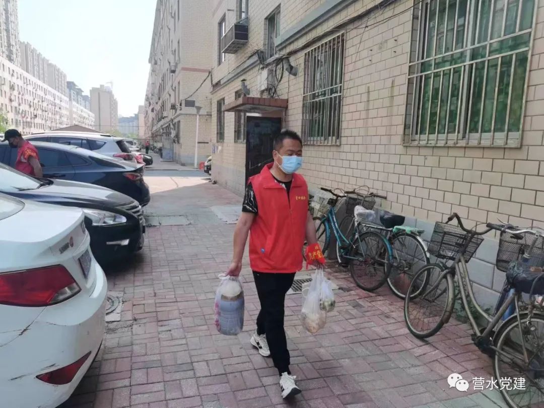 機(jī)關(guān)第一黨支部齊智強(qiáng)在書(shū)香庭院小區(qū)協(xié)助物業(yè)分發(fā)物資