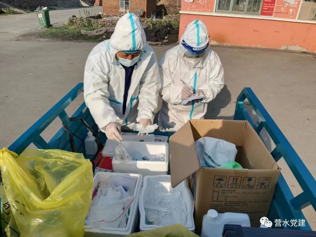 管網(wǎng)運(yùn)維中心黨支部胡峰(左)協(xié)助醫(yī)護(hù)人員為居民進(jìn)行核酸檢測(cè)