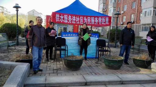 10月29日上午,集團(tuán)公司第3次組織營(yíng)業(yè)、客服等部門的黨員干部職工近百人,深入主城區(qū)、老邊區(qū)、蓋州永安的恒大城、福山花園、永江城市花園、新豐園、麗海新苑、華城花園、熙湖逸品、辰洲麗景小區(qū),集中開展了“供水服務(wù)進(jìn)社區(qū)、為民服務(wù)零距離”活動(dòng)?;顒?dòng)現(xiàn)場(chǎng),黨員干部職工秉著“親情水務(wù),情潤(rùn)萬(wàn)家”的服務(wù)理念,耐心仔細(xì)地聆聽每一位居民的訴求,認(rèn)真解決各類疑難問題?;顒?dòng)當(dāng)天,黨員干部共發(fā)放用水服務(wù)常識(shí)宣傳單594份,發(fā)放征求意見函71份,現(xiàn)場(chǎng)解答用戶咨詢各類用水問題95個(gè),上門解決用戶更名、水龍頭堵塞等用水難題9件次。另外, 冬季將至,針對(duì)每年冬天小區(qū)內(nèi)都有未關(guān)樓宇門導(dǎo)致水表、水管凍壞、凍裂現(xiàn)象發(fā)生,水務(wù)集團(tuán)干部職工還向廣大用水戶大力宣供水設(shè)施防寒保暖常識(shí),并在各小區(qū)宣傳板上張貼防寒保暖溫馨提示,提醒廣大市民隨手關(guān)閉單元門,對(duì)于沒有采取取暖措施的用戶,要對(duì)用水設(shè)施做好保暖工作,他們真誠(chéng)的服務(wù)贏得了市民一致好評(píng)。