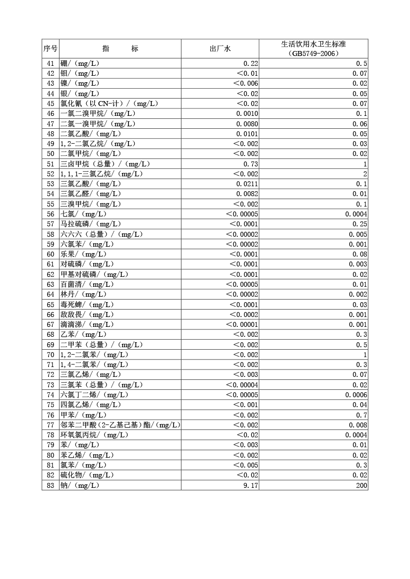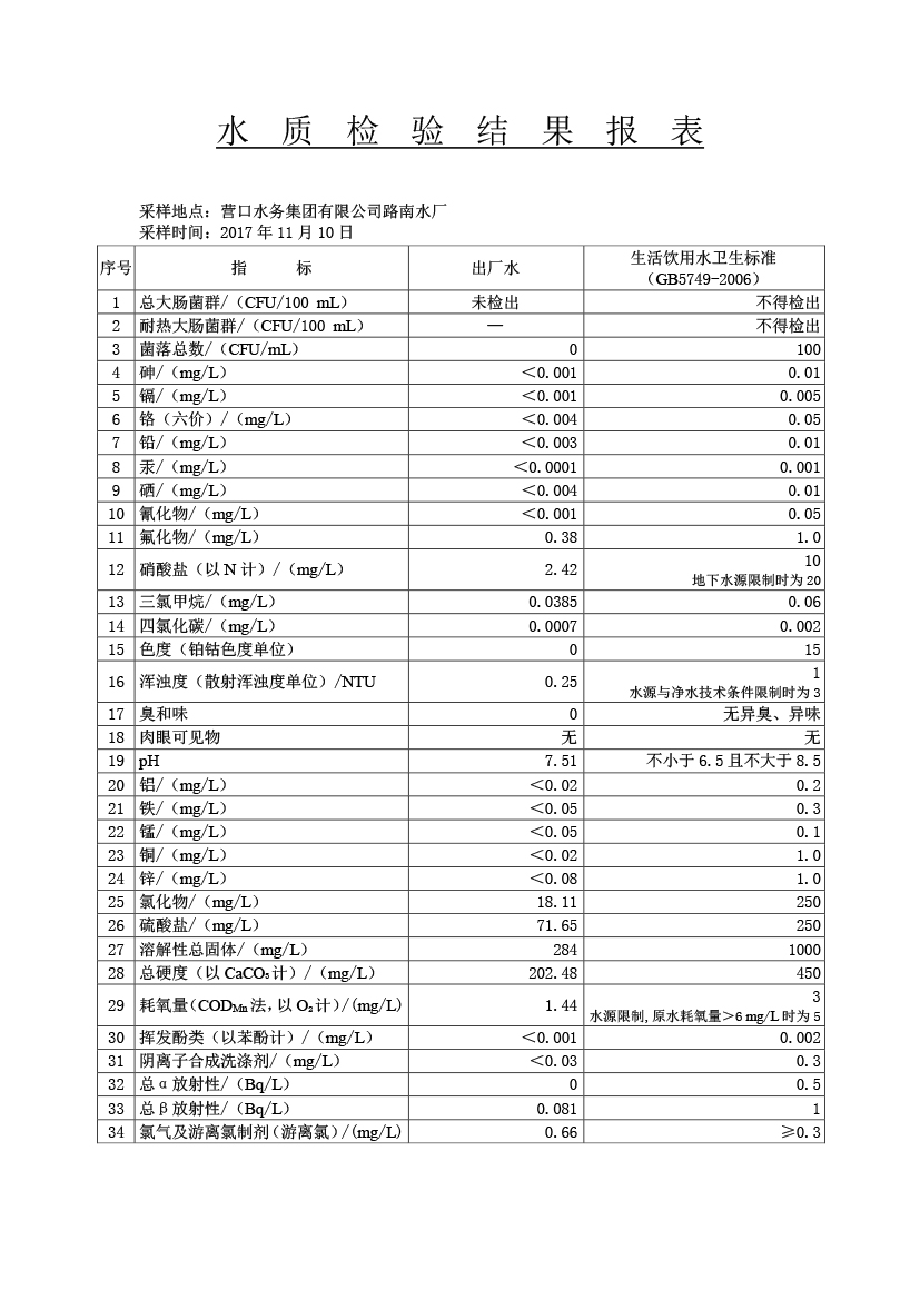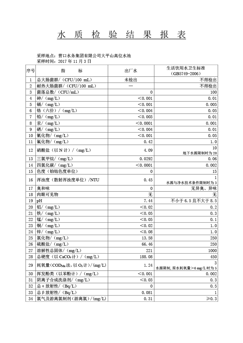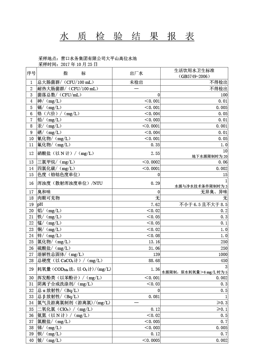 水質(zhì)報告