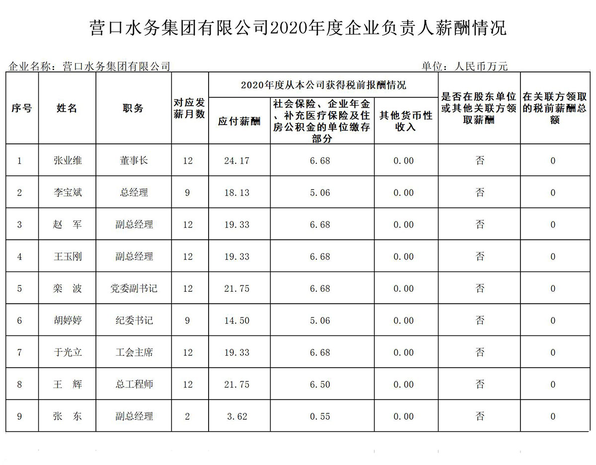 2020年度營口市市屬企業(yè)負責(zé)人薪酬信息公開表